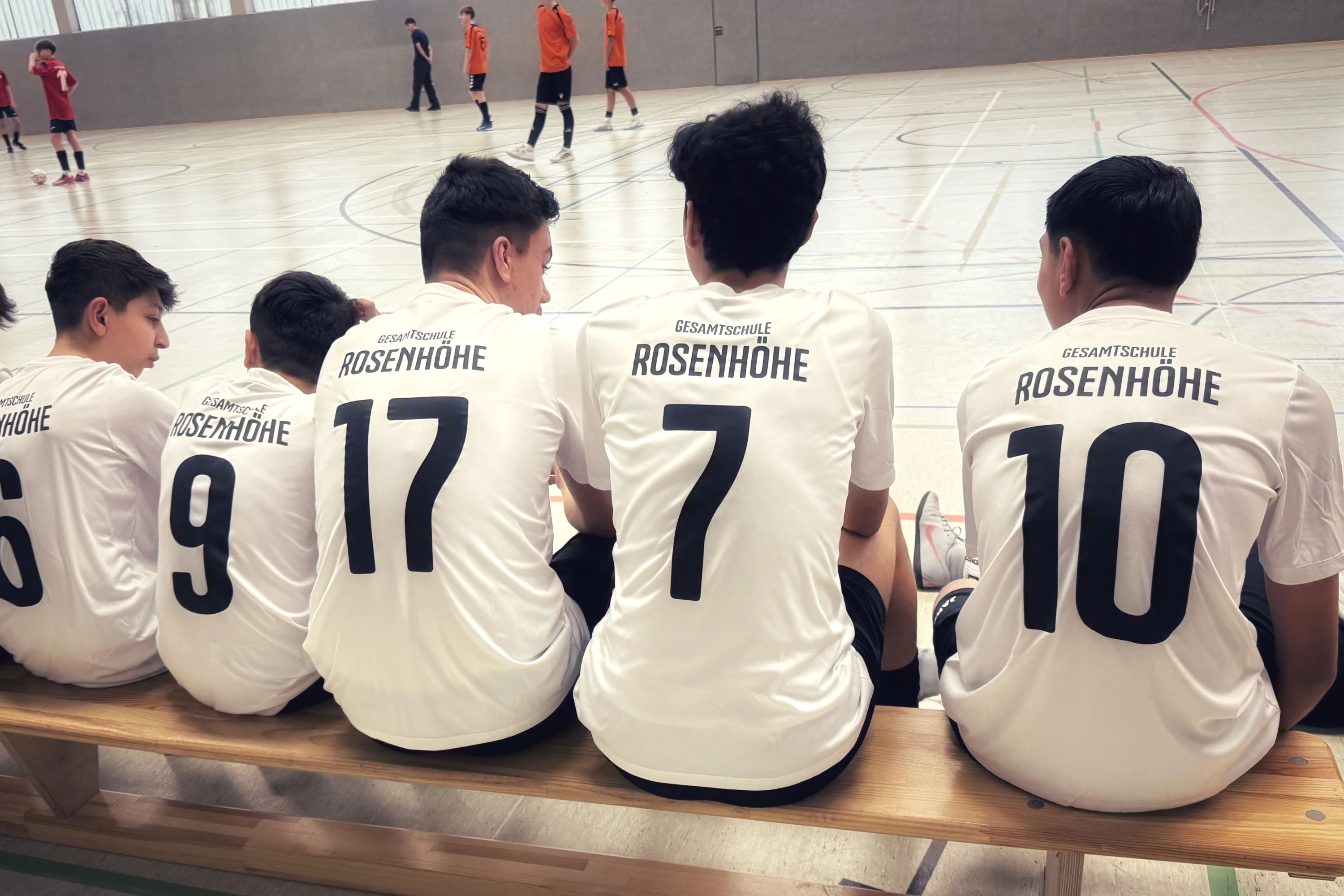 Die Fußball-Schulmannschaft der Gesamtschule Rosenhöhe nahm in diesem Jahr an den Stadtmeisterschaften teil und zeigte eine ansprechende Leistung. Trotz des unglücklichen Ausscheidens in der Vorrunde – es fehlte nur ein einziges Tor zum Weiterkommen – überzeugten die Schüler mit gutem Kombinationsfußball. Dies wurde nicht nur von den Zuschauern des Hans-Ehrenberg-Gymnasiums honoriert, sondern auch von anderen Schulen mit Lob bedacht. Herr Yarhin, Leiter der Schulmannschaft-AG, zeigte sich stolz über die Leistung der Mannschaft: „Wir haben uns hier absolut toll präsentiert und Werbung in eigener Sache gemacht. In unseren neuen Trikots glänzten die Jungs, wobei der Spaß im Vordergrund stand – das ist das Wichtigste. Zudem wurde das Zusammengehörigkeitsgefühl gestärkt, was ebenfalls von großer Bedeutung ist.“ Mit dieser positiven Erfahrung blickt das Team optimistisch in die Zukunft. Die Schüler freuen sich bereits auf die kommenden Turniere, bei denen sie erneut ihr Können unter Beweis stellen wollen.