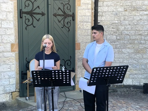 Auch unsere Schüler:innen waren Teil dieses besonderen Moments: Anna, Nisa und Yasin aus dem 10. Jahrgang wirkten aktiv mit – sie lasen Biografien der Opfer, legten Blumen nieder und setzten in ihren Worten klare Zeichen für Respekt, Menschlichkeit und gegen das Vergessen.